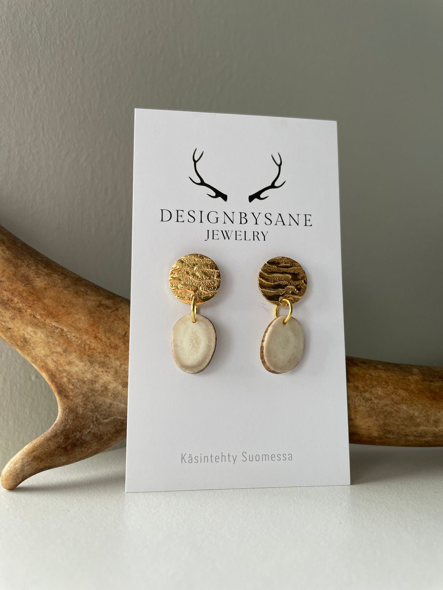 Routa korvakorussa yhdistyvät rosoinen pinta sekä luonnonmateriaalit. Saatavilla 18K kullattuilla sekä hopeisilla yksityiskohdilla