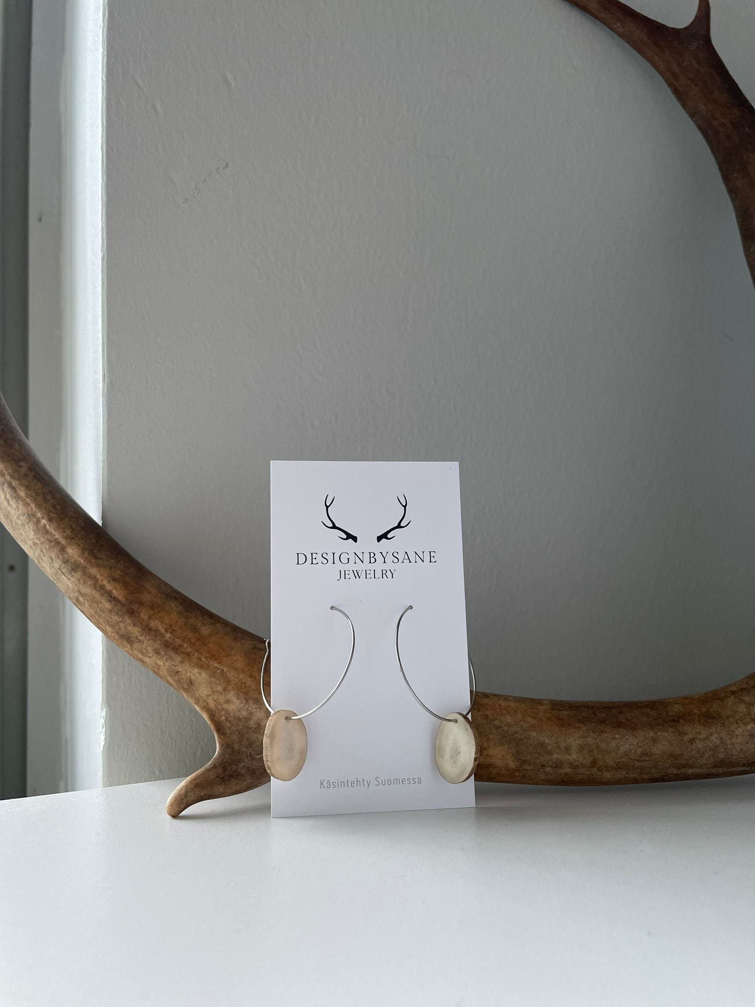 Vaaleat sävyt ja kaareva muoto tekee koruista kevyet käyttää. Yksinkertainen muoto antaa materiaalin ja luonnollisen pinnan puhua puolestaan.