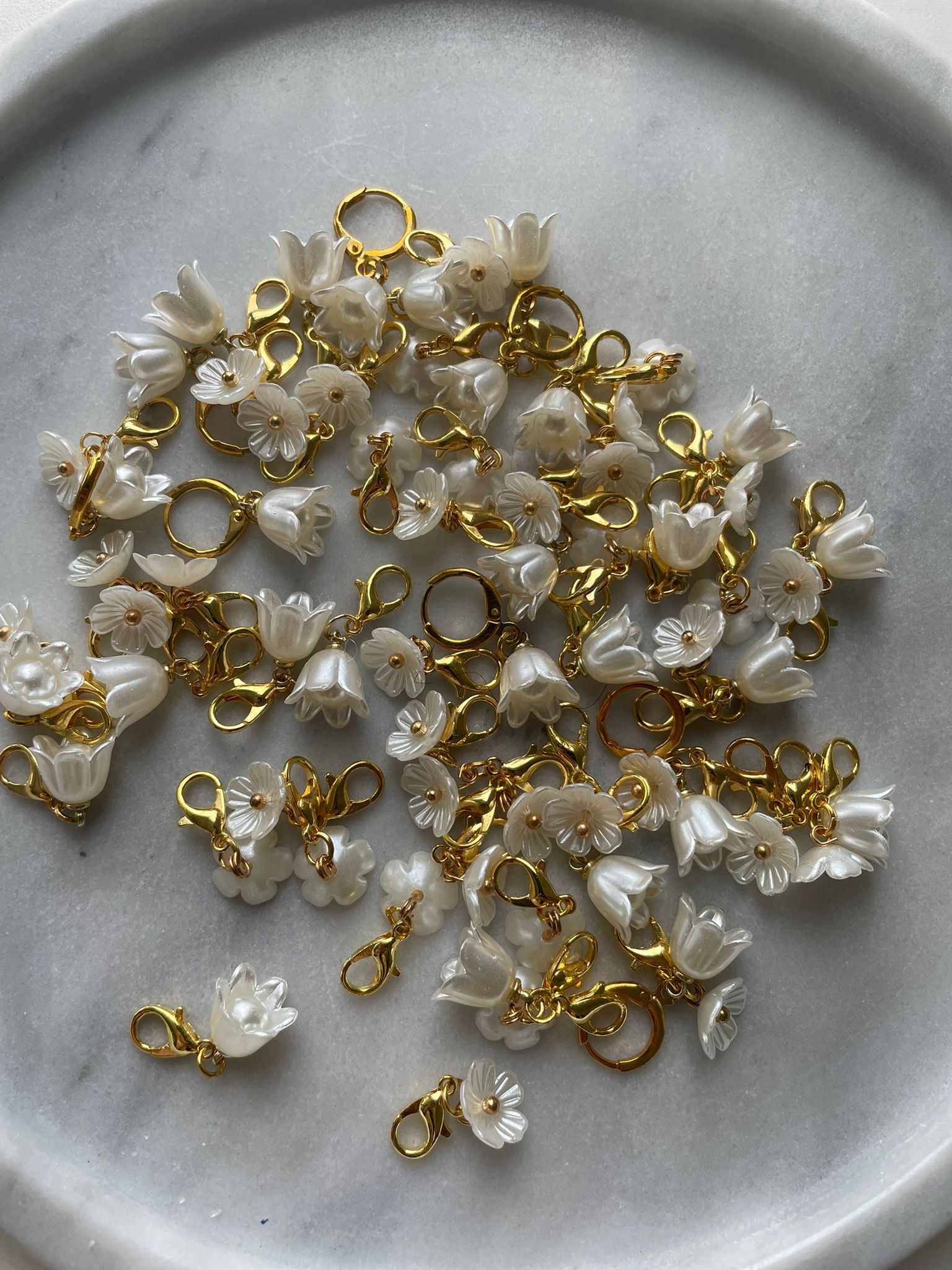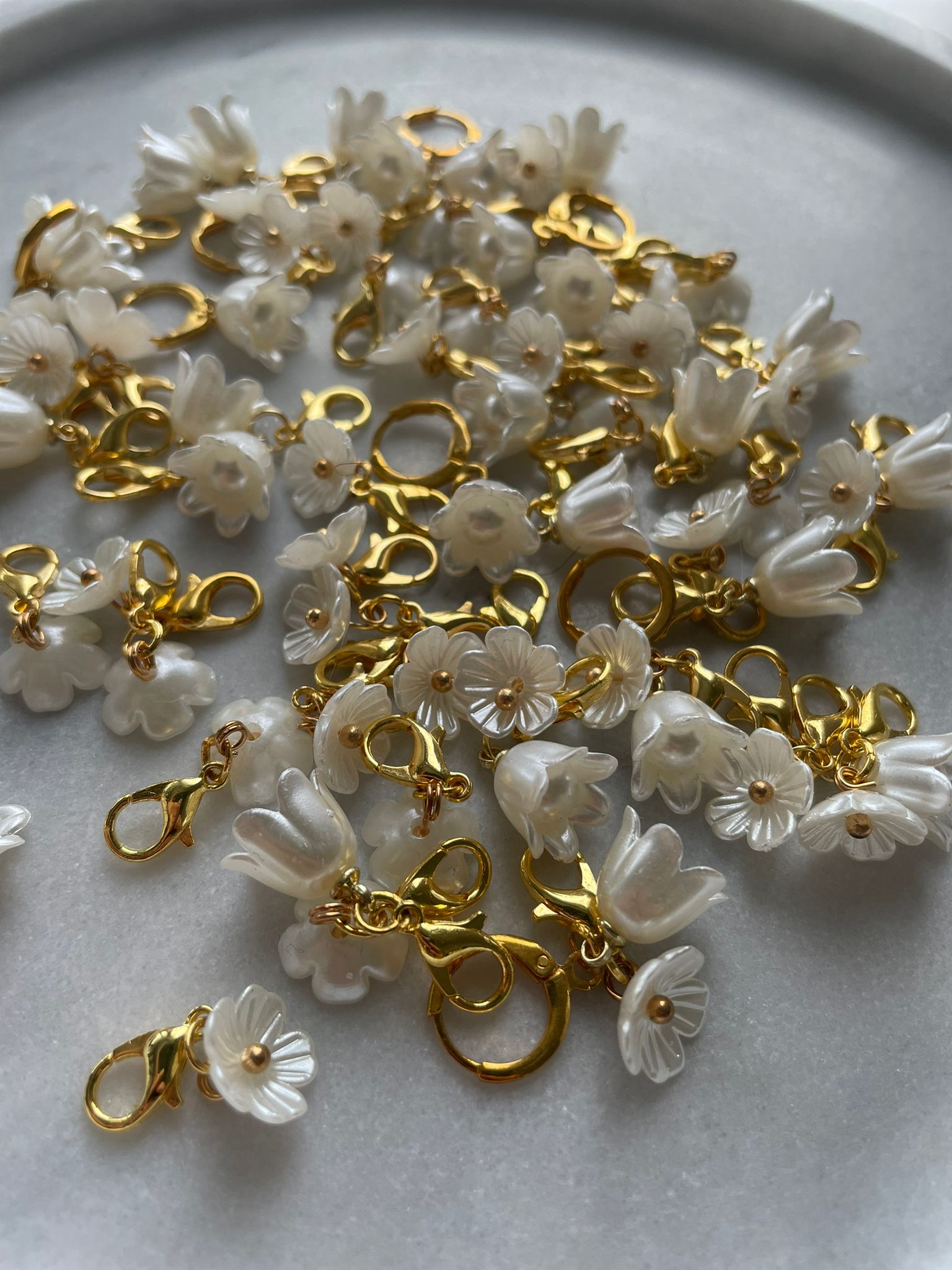 Kukka silmukkamerkkejä. Kukkia on kahta eri kokoa ja ne valikoituvat sattumanvaraisesti tilaukseesi. Voit valita haluatko ison vai pienen klipsun.
