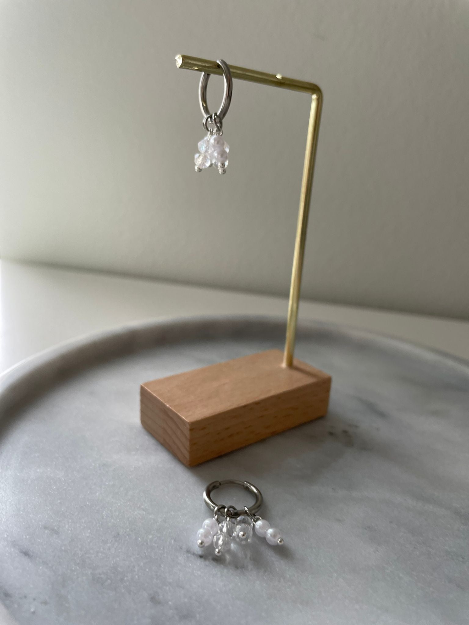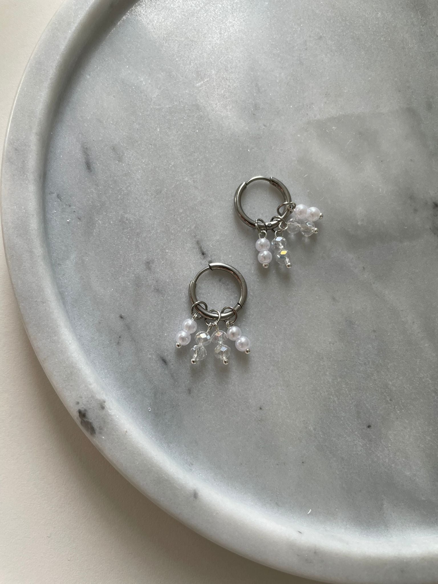 Venla korvakoruista löytyy pientä säihkettä lasihelmien kautta. Korvakorut ovat sirot, mutta näyttävät.